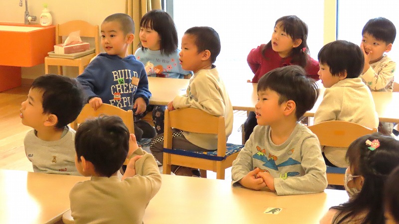 年長さんでは,卒園式にむけての練習がスタートしました。練習とは言えみんな真剣そのものでした! 今年の年長さんは歌がとても上手で,びっくりしました!!