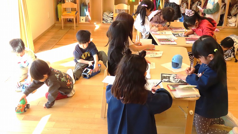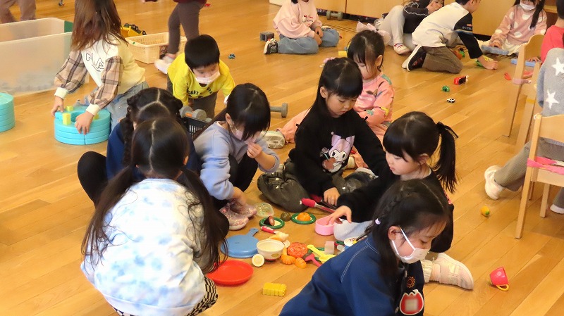 今日は朝全園児で合同保育を行いました。保育室でもいろいろな活動をしましたよ!