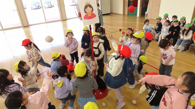 今日はひな祭り。幼稚園でもひな祭り集会をしました。先生からひな祭りのお話を聞いた後,みんなでゲームなどをして楽しみましたよ!