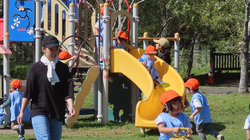 今日は、全園児の半分が別保公園へ遠足に出かけました。秋らしい清々しい日和の中で楽しく遊びました! 一方、留守番組も製作や外遊びを楽しみましたよ!