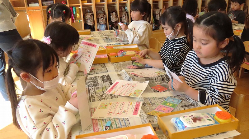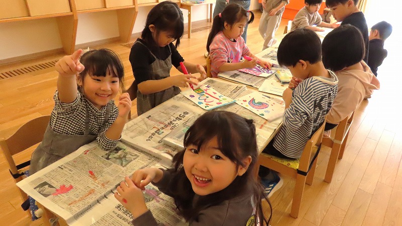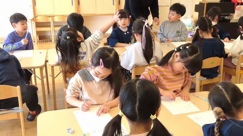 今日の年中さんと年少さんは体育遊びでした! 年長さんは卒園までのカレンダー作りをしましたよ。