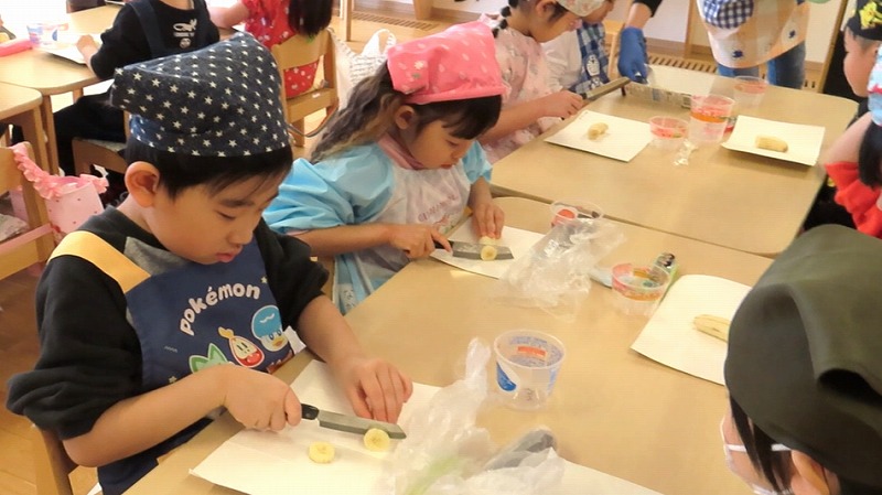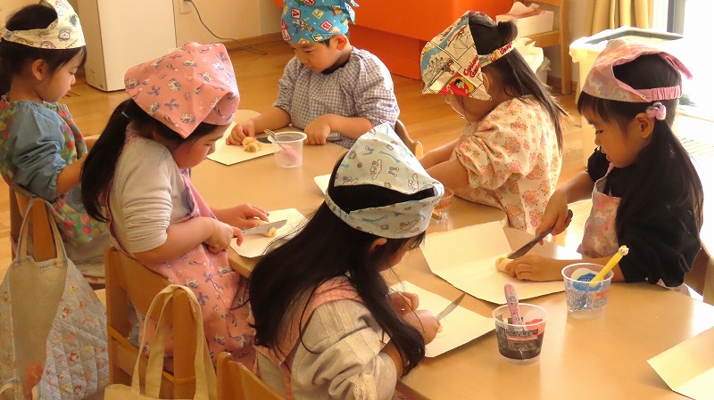 今日はそれぞれのクラスで料理ごっこをしました! 美味しいパフェができましたよ!