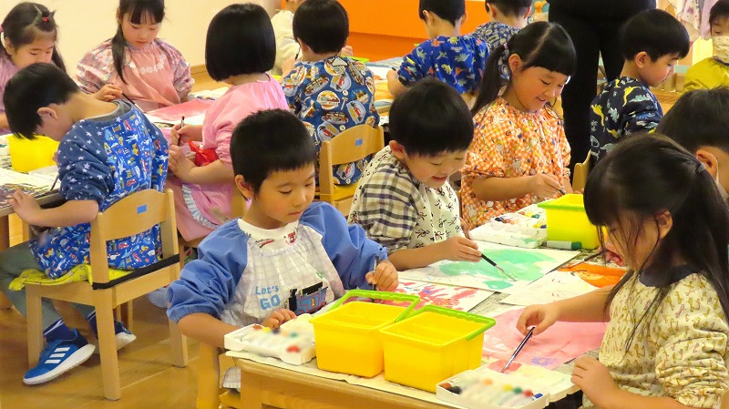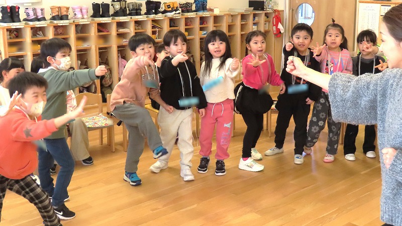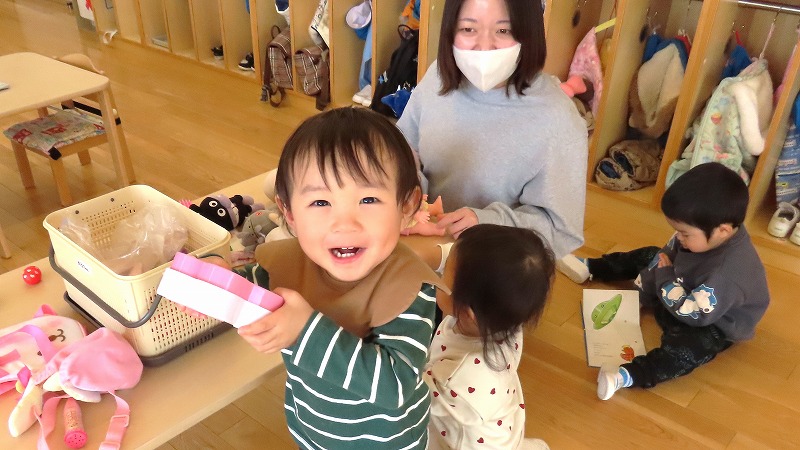 今日は英語遊びあり,製作あり,お楽しみありと各保育室では楽しい活動がたくさんありました。子どもたちは,元気に活動しましたよ!