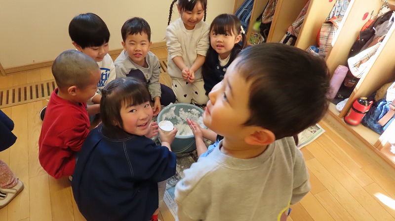 今日から3学期が始まりました。しばらく見ないうちに子どもたちは一回り大きくなったような気がします。元気に当園してくれて,本当にありがとう!