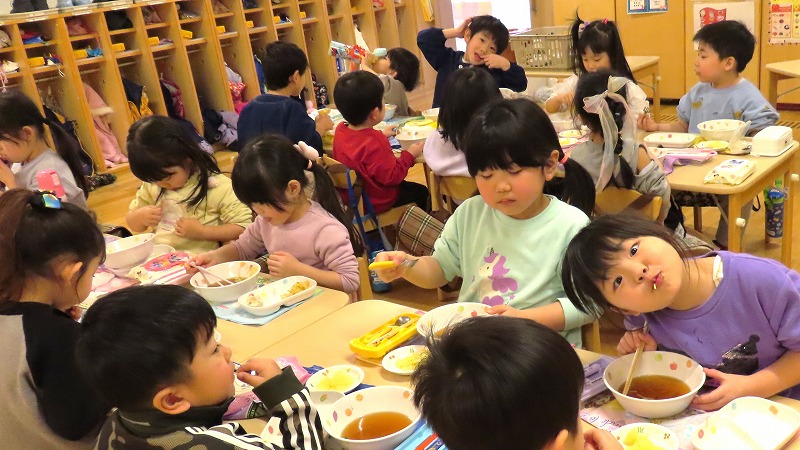 今日の給食は子どもたちが大すきなラーメンでした! スープまで飲み干す子どもたちがたくさんいましたよ!