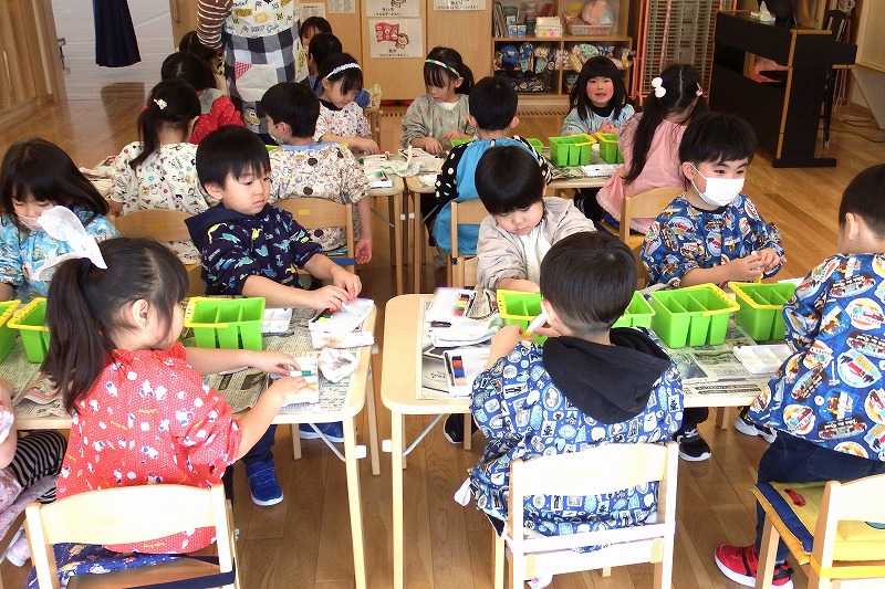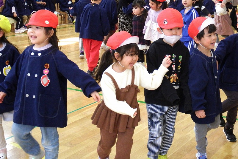 今日はみんなで演劇「赤ずきん」を鑑賞しました。オオカミが登場する場面では,年少さんの何人かは泣き出したり,先生にすり寄ったりする子も……。でも楽しく鑑賞できました!