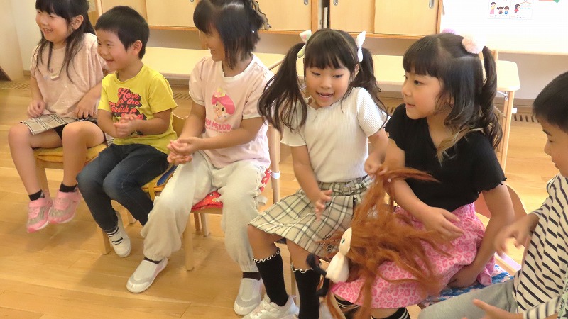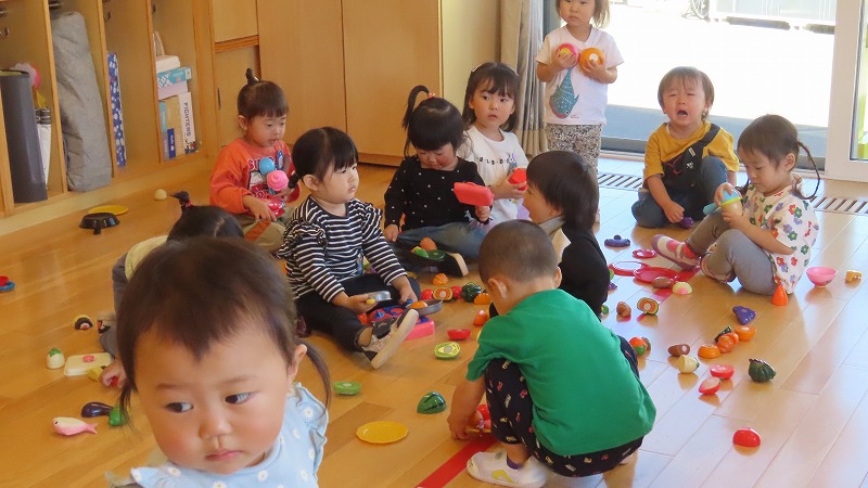 今日は久しぶりにオープン活動(自由遊び)をしましたよ。それぞれ好きな場所で楽しくあそびました。みつばちさんは製作で「さつまいも」をつくり、職員室に見せに来てくれました!