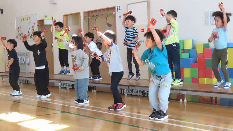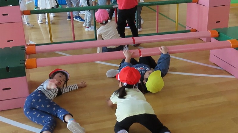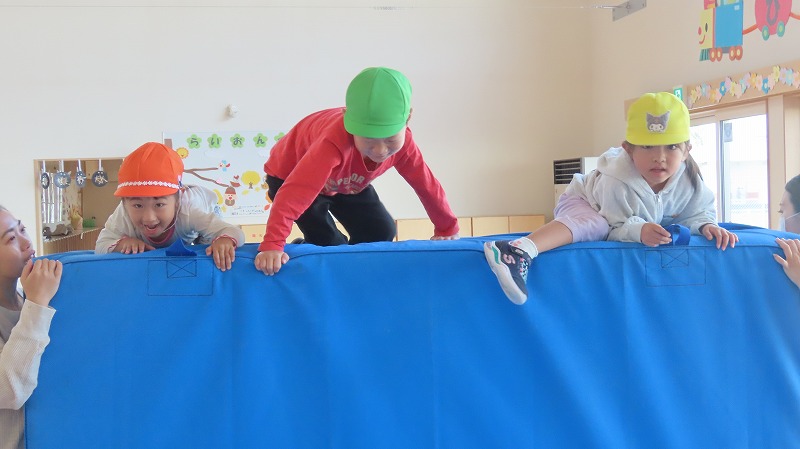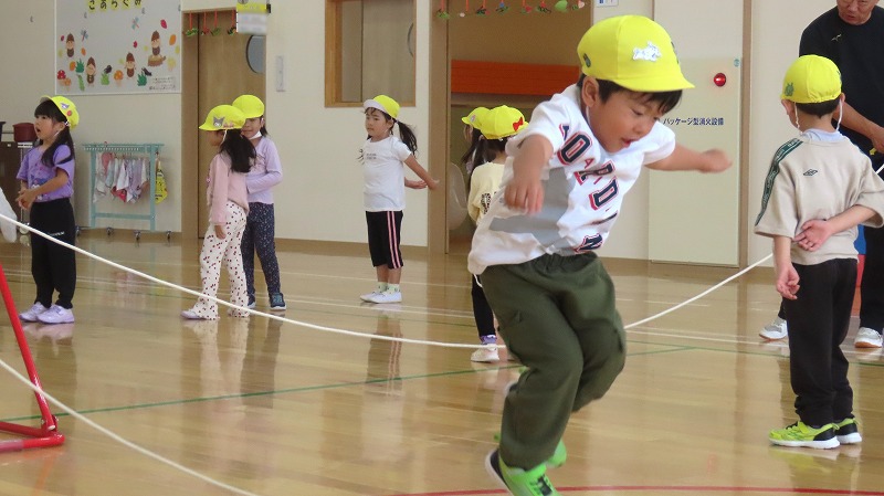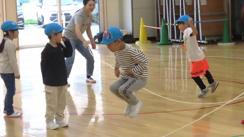 今日は年中さんと年長さんで体育遊びをしました。大縄をつかって遊びましたよ!
