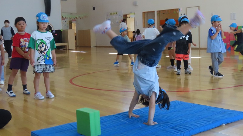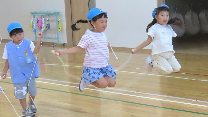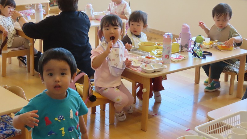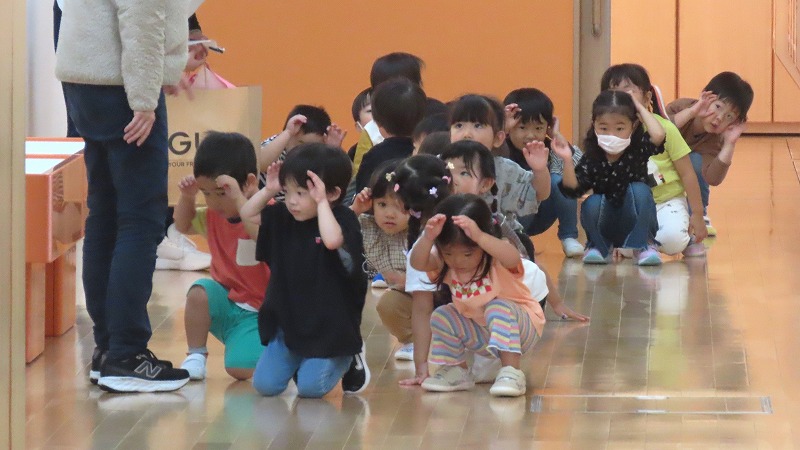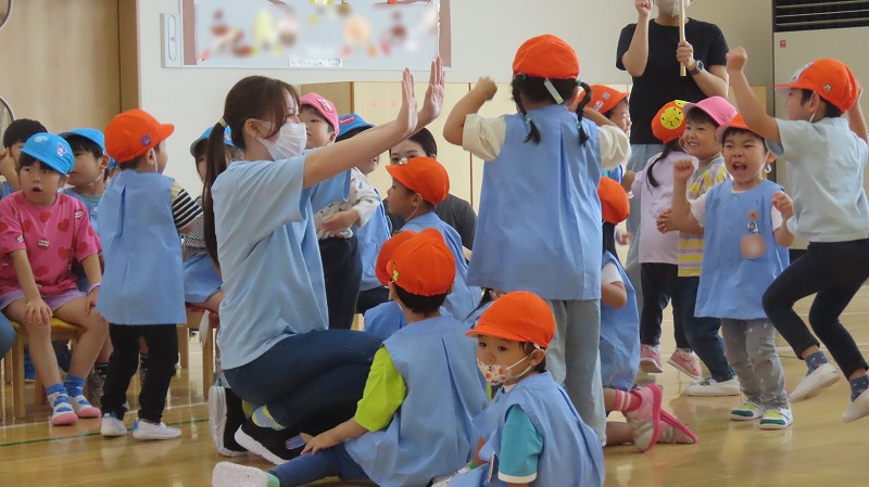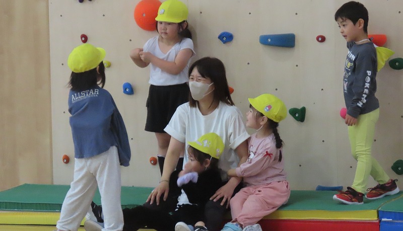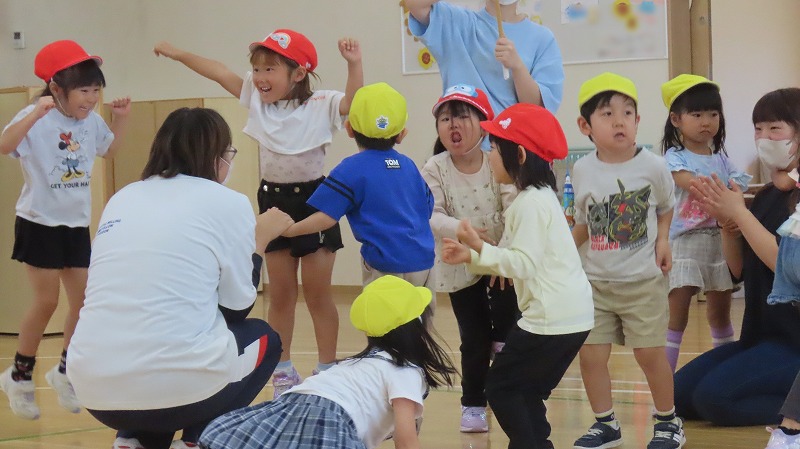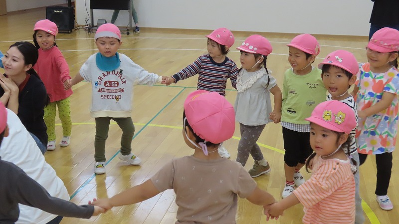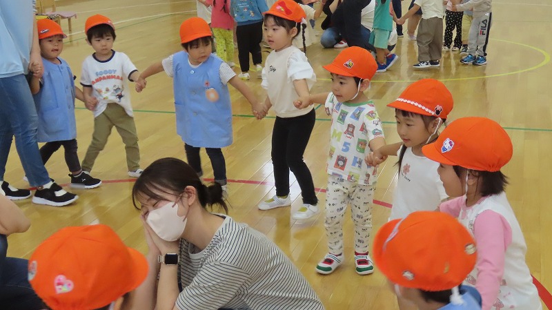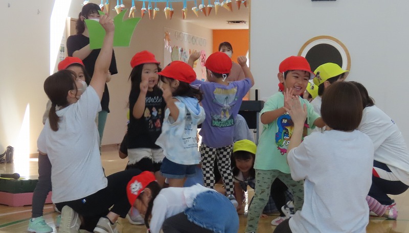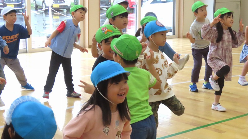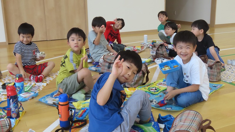 今日は雨のため、うさぎ・ぱんだ・きりん組の遠足は延期になりました。そのかわり全学年で体育館でゲームなどをして楽しみました。また、遠足が延期になったクラスは、体育館で遠足気分でお弁当を食べましたよ!