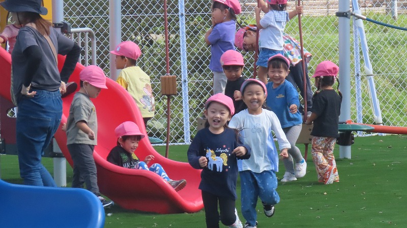 今日は秋らしい季節となりました。また,一日の気温差も大きくなっています。そのような中、年中さんは水遊びに出かけました。