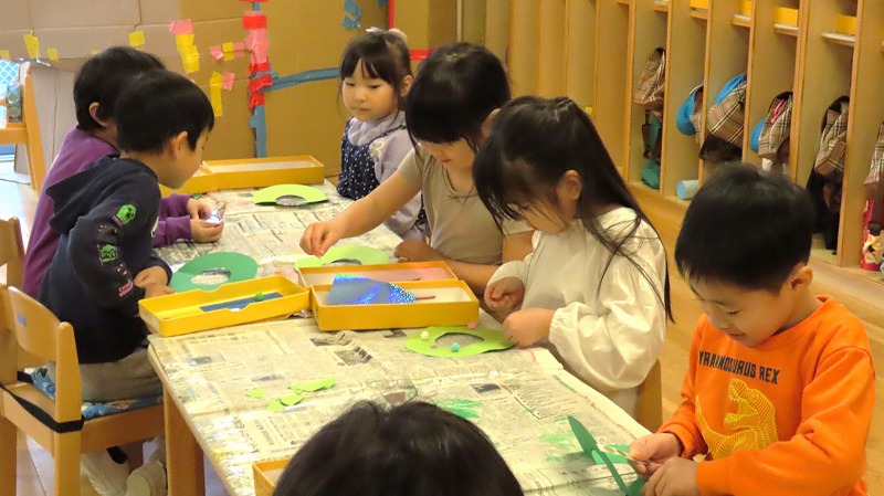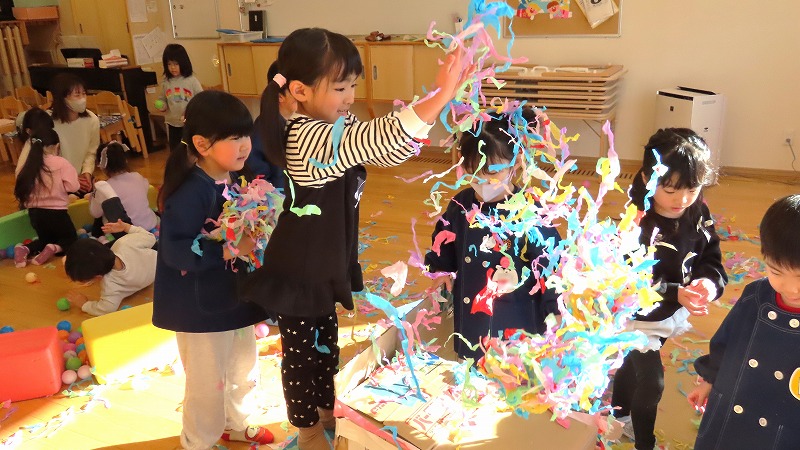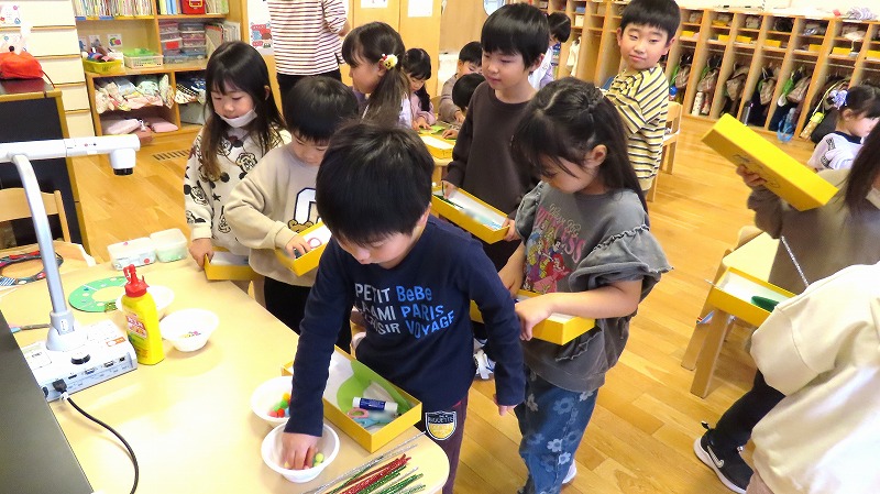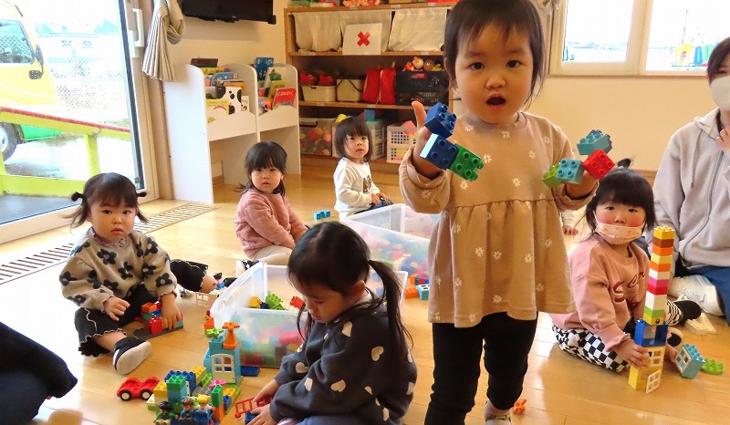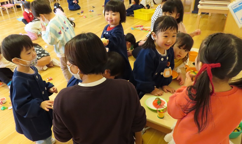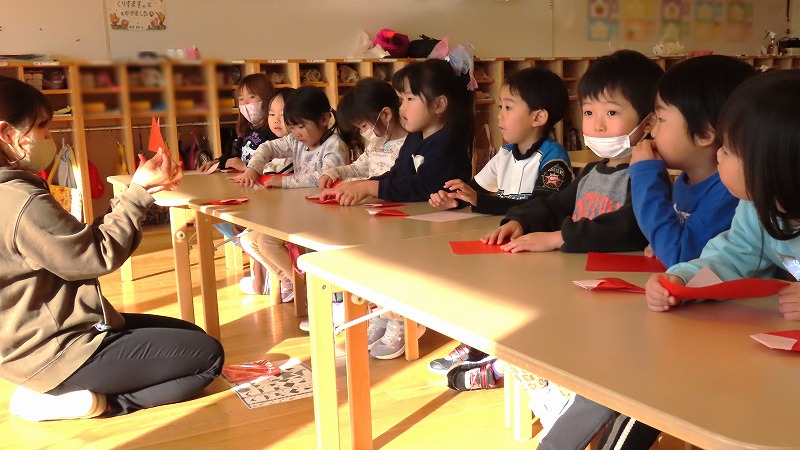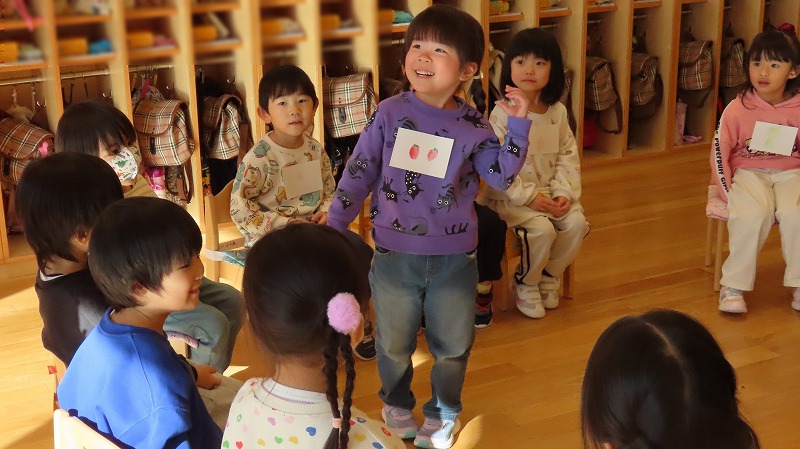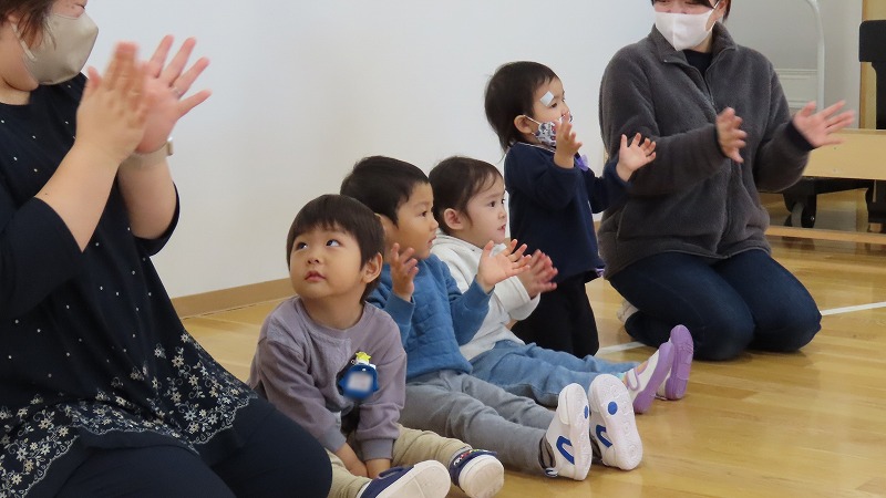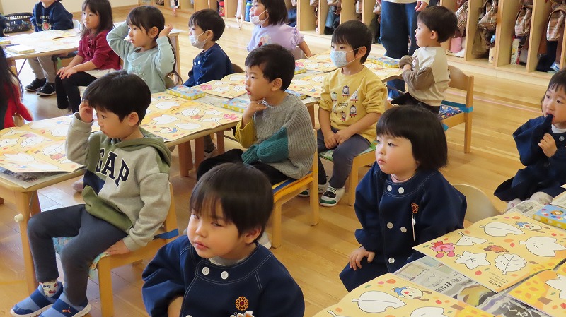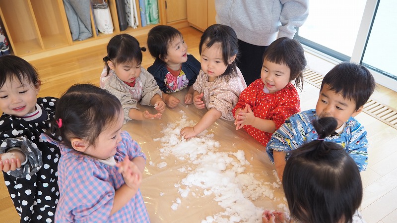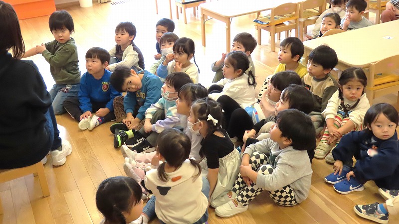 今朝、カーテンを開けると外は雪化粧。未就園児の、みつばちさんのクラスでは、その雪で遊びました。一方、年中さんのクラスは保護者参観。たくさんのお家の人が来てくれました!