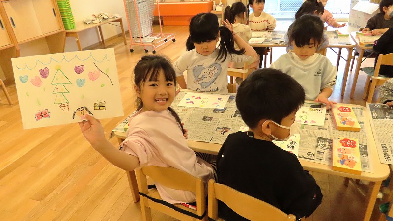 今日から12月。保育室でもクリスマスの製作や絵を描く活動をしてました。インフルエンザの感染が広がる中、今日の感染者は2名となっています。しかし、油断は禁物。引き続き注意がひつようですね。