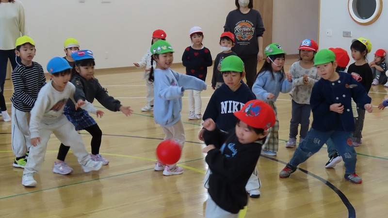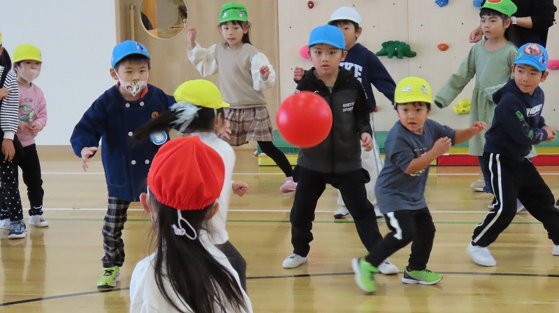 今日は年長さんの保護者参観がありました。その後、年長さんは年中さんと一緒にドッチボールをして盛り上がりましたよ!