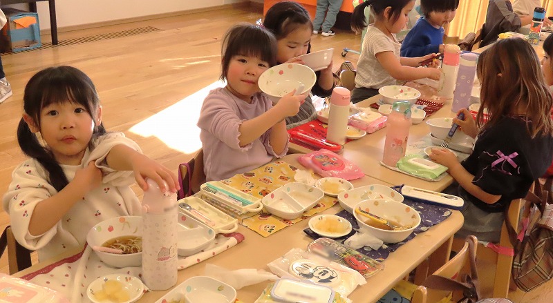 今日の給食は子どもたちが大すきなラーメンでした! スープまで飲み干す子どもたちがたくさんいましたよ!