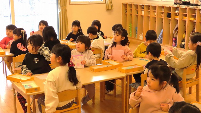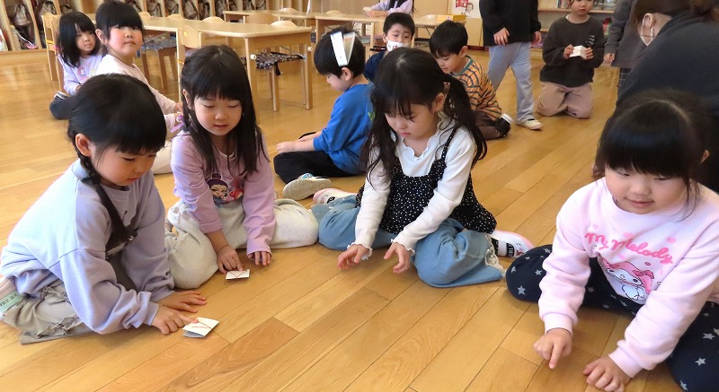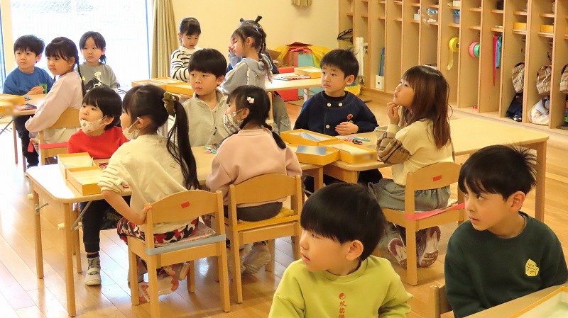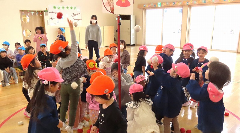 今日はひな祭り。幼稚園でもひな祭り集会をしました。先生からひな祭りのお話を聞いた後,みんなでゲームなどをして楽しみましたよ!