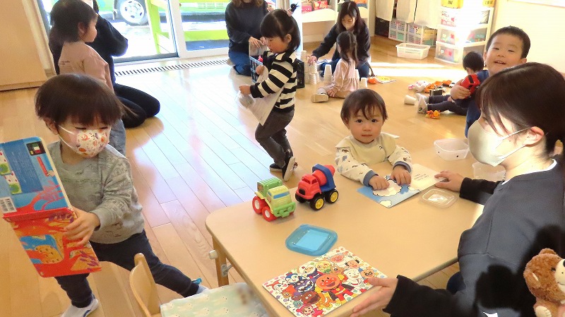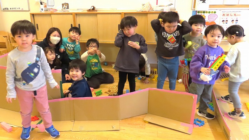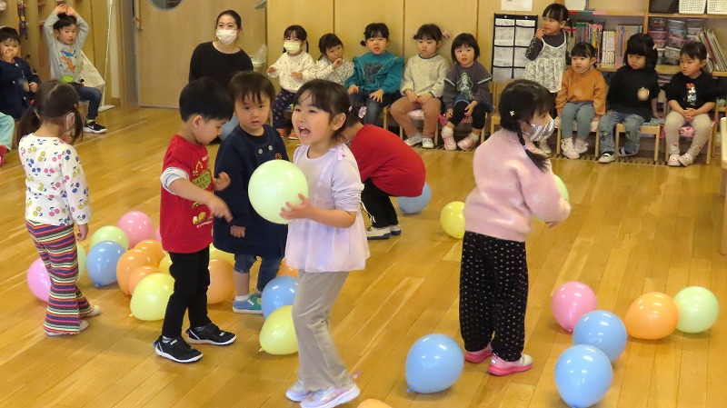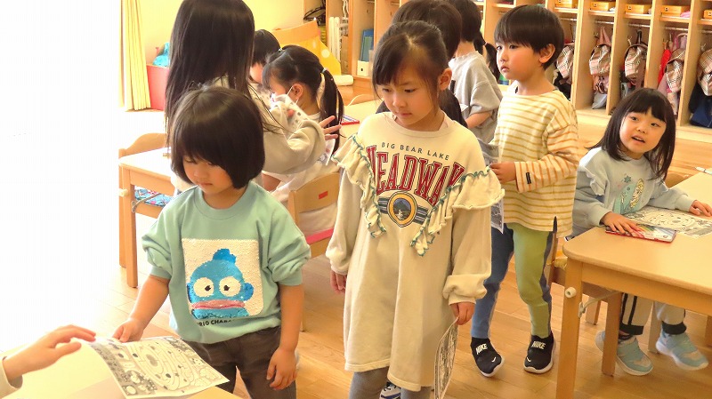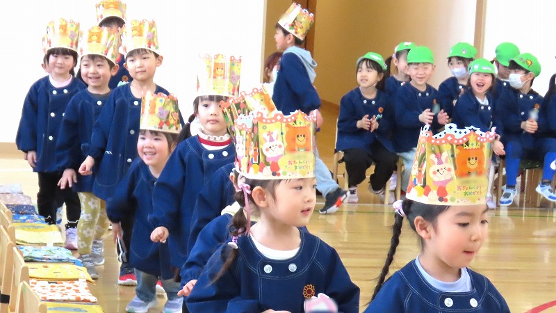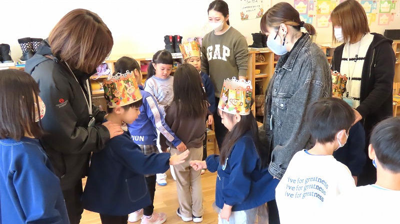 先日の学級閉鎖のため3月お誕生会ができなかったきりん組。今日はクラス内でそのお友だちのお祝いを行いましたよ!