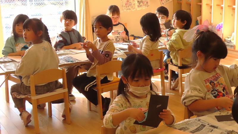 今日はどのクラスも制作や英語遊びなど、保育室での活動が多かったです。3連休後で、インフルエンザ感染者が一時的に減りましたが、引き続きご注意を!