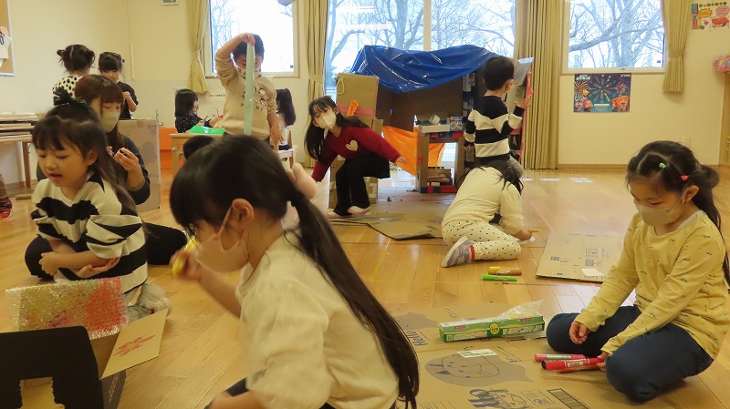 今日は年中・長で体育遊びを楽しみました。こあらさんでは,段ボールをつかって大きな家をつくるなど,製作を楽しみましたよ!