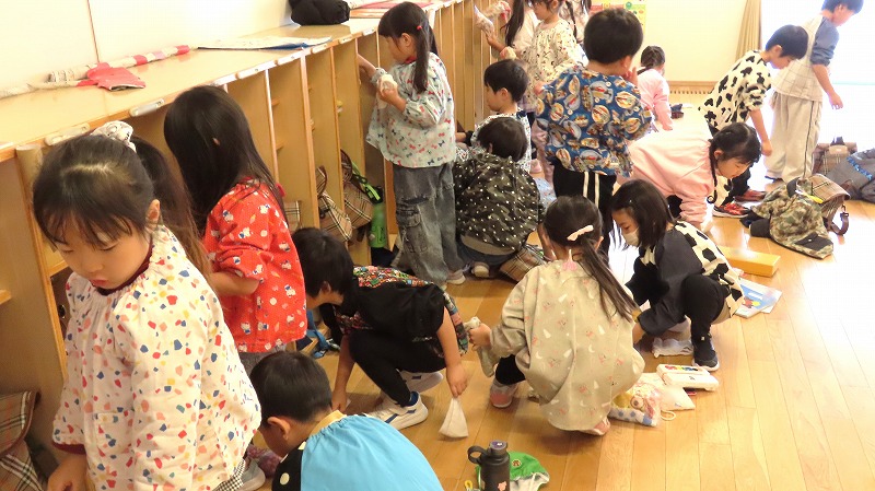 今日はどのクラスも大掃除をしました。自分のロッカー、床の水拭きなど2学期の汚れをしっかり落としました! 明日はいよいよ2学期終了となります。明日も元気に登園してほしいです!