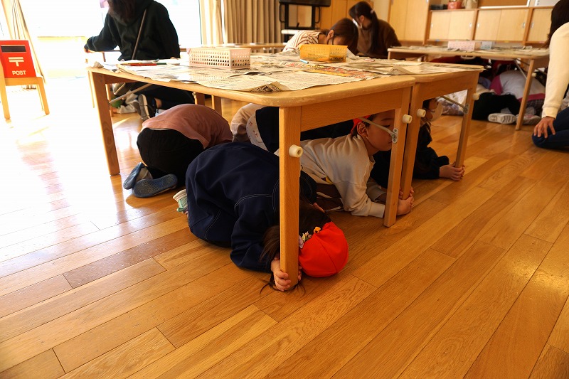 今日は、避難訓練を行いました。