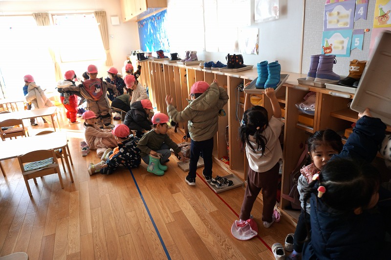 オープン活動時の冬の避難を想定し、素早い避難行動がとれていました。