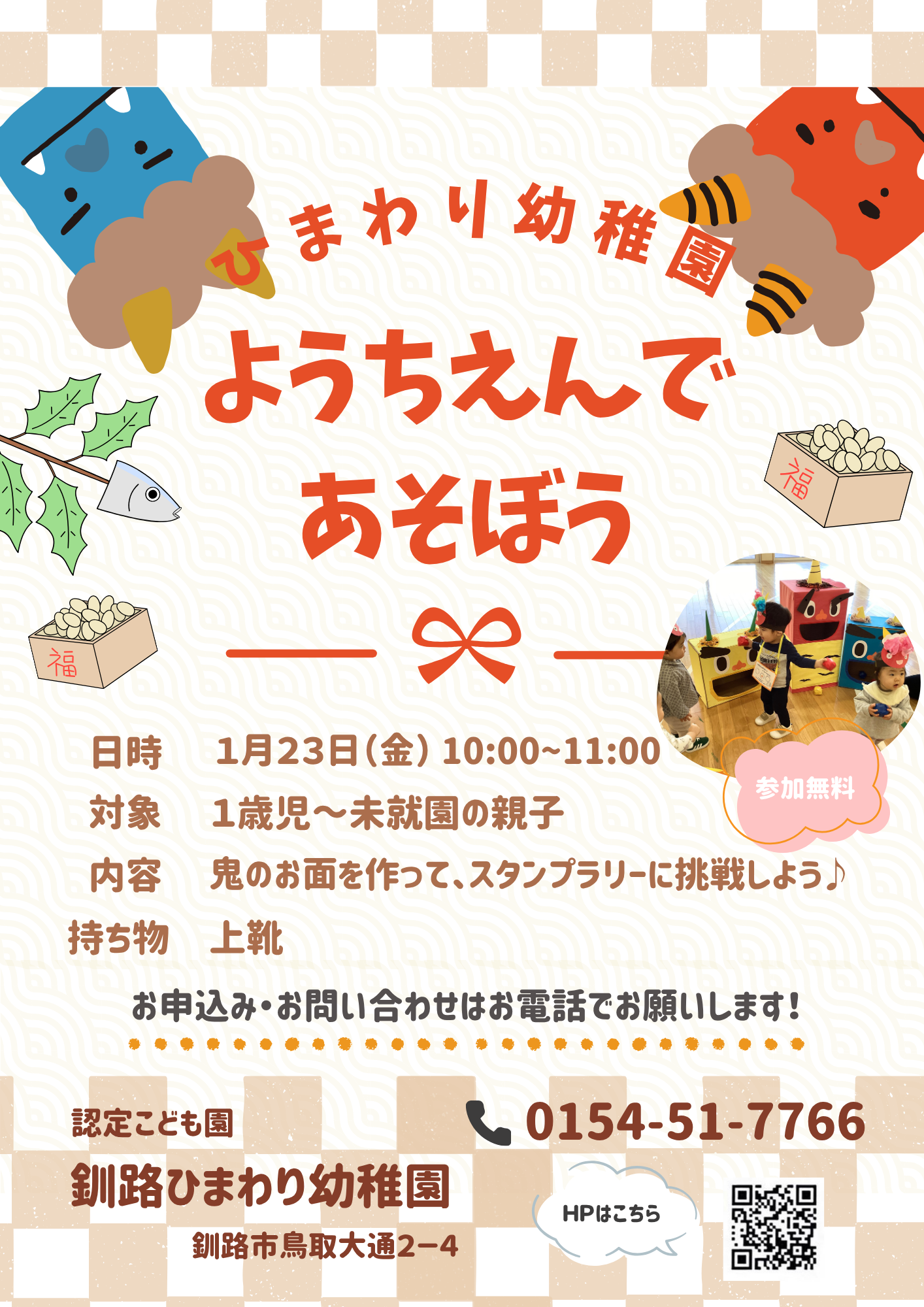 内 容 : 鬼のお面を作ってスタンプラリーに挑戦!!